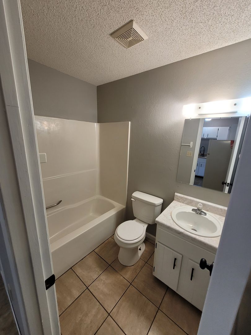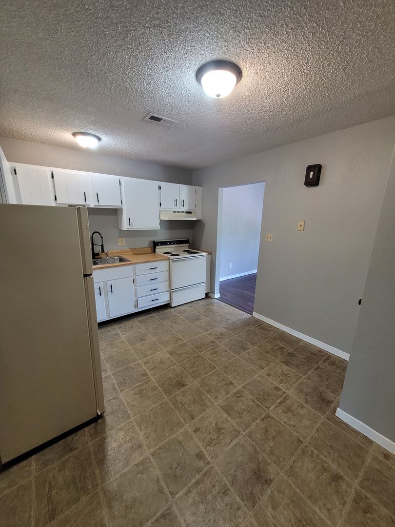 1bd/1bth upstairs apartment. Pet friendly with additional $150 non refundable deposit and $50 a month pet fee. Water and trash included. Coin operated laundry on site.